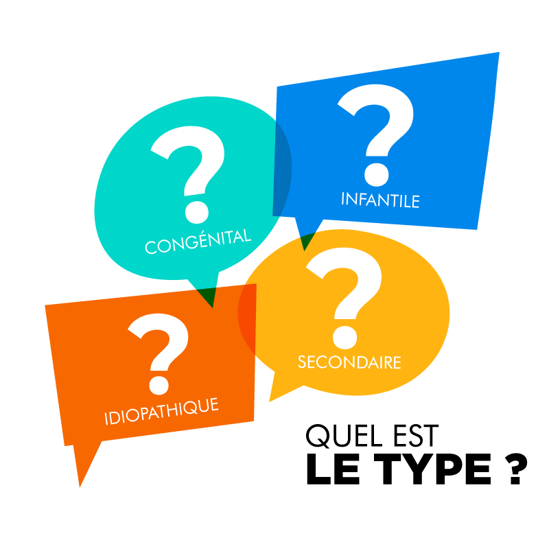 - Il existe plusieurs types tels que l’idiopathique, l’infantile, le congénital et le secondaire.